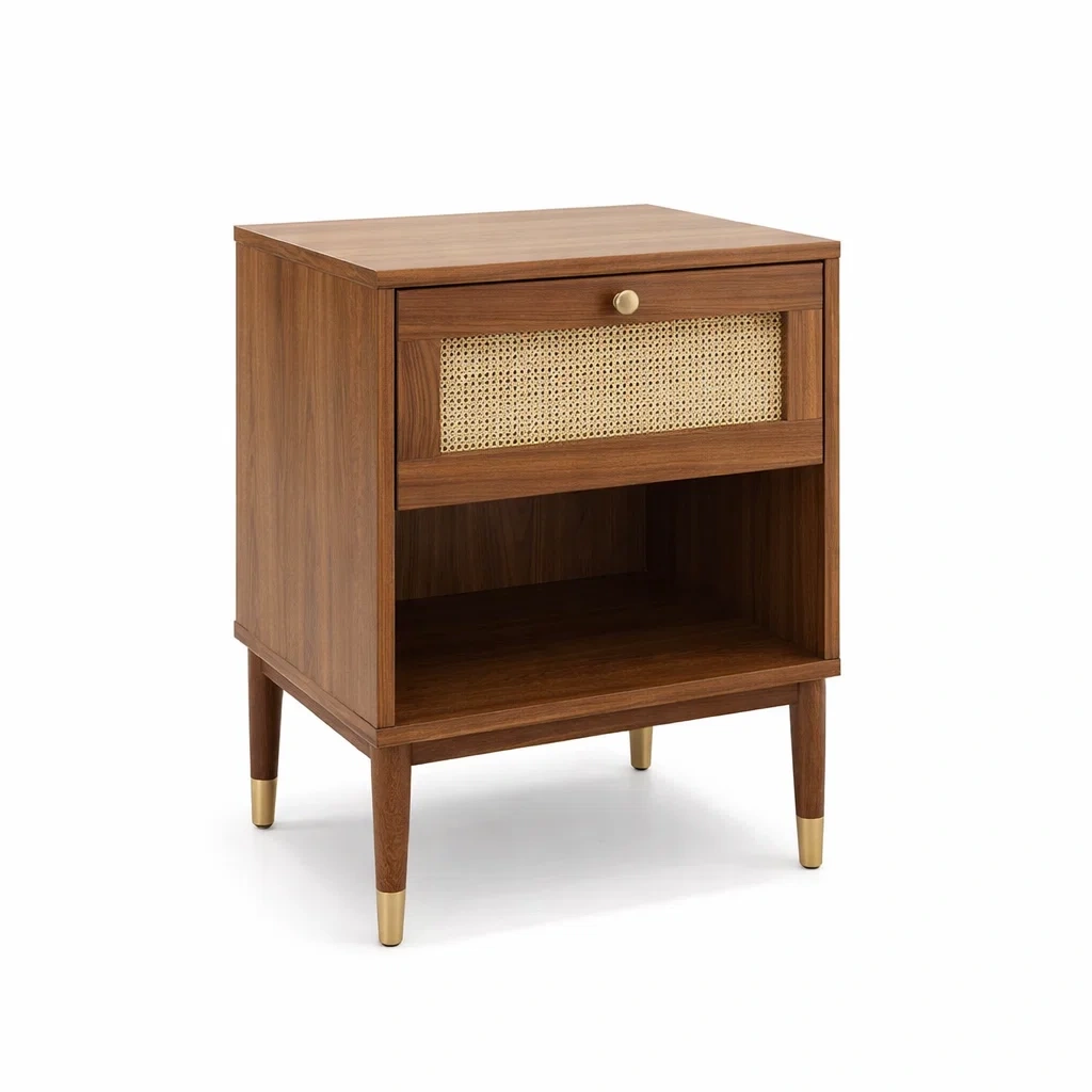 Caractéristiques : 1 tiroir, 1 étagère ouverte, design avec façade en rotin.